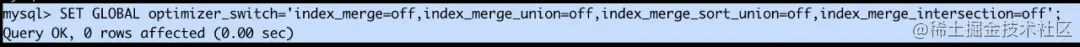 用命令禁用Index Merge:SET GLOBAL optimizer_switch='index_merge=off,index_merge_union=off,index_merge_sort_union=off,index_merge_intersection=off';