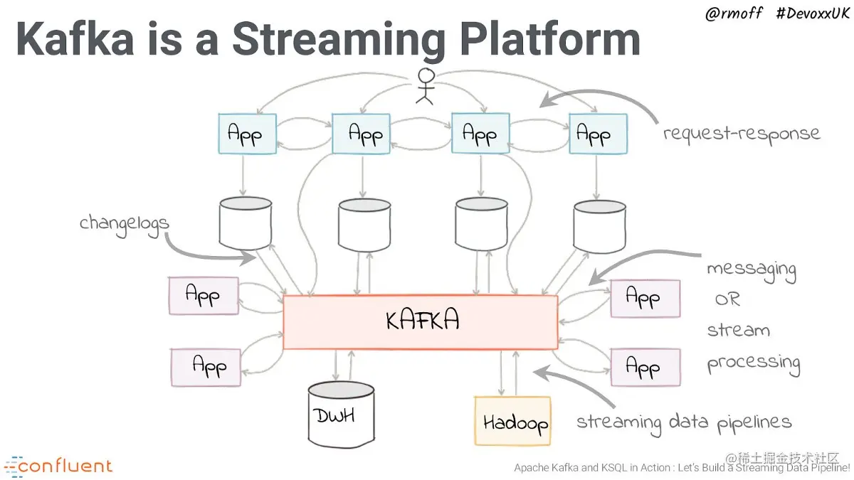 Kafka 是消息传递系统之王。它由 LinkedIn 于 2011 年创建,并在 Confluent 的支持下得到了广泛的传播。Confluent 已向开源社区发布了许多新功能和附加组件,例如用于模式演化的 Schema Registry,用于从其他数据源轻松流式传输的 Kafka Connect 等。数据库到 Kafka,Kafka Streams 进行分布式流处理,最近使用 KSQL 对 Kafka topic 执行类似 SQL 的查询等等。