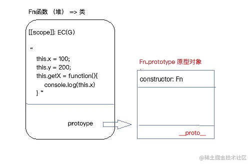 a. 1. 首先函数Fn会创建一个堆内存,内部存储代码字符串,以及包含prototype原型