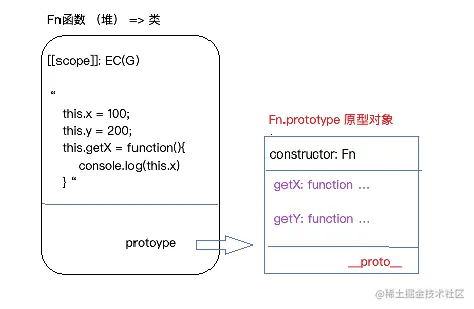 getY,this为Fn.prototype,在Fn.prototype上找不到y,所以Fn.prototype.y为undefined