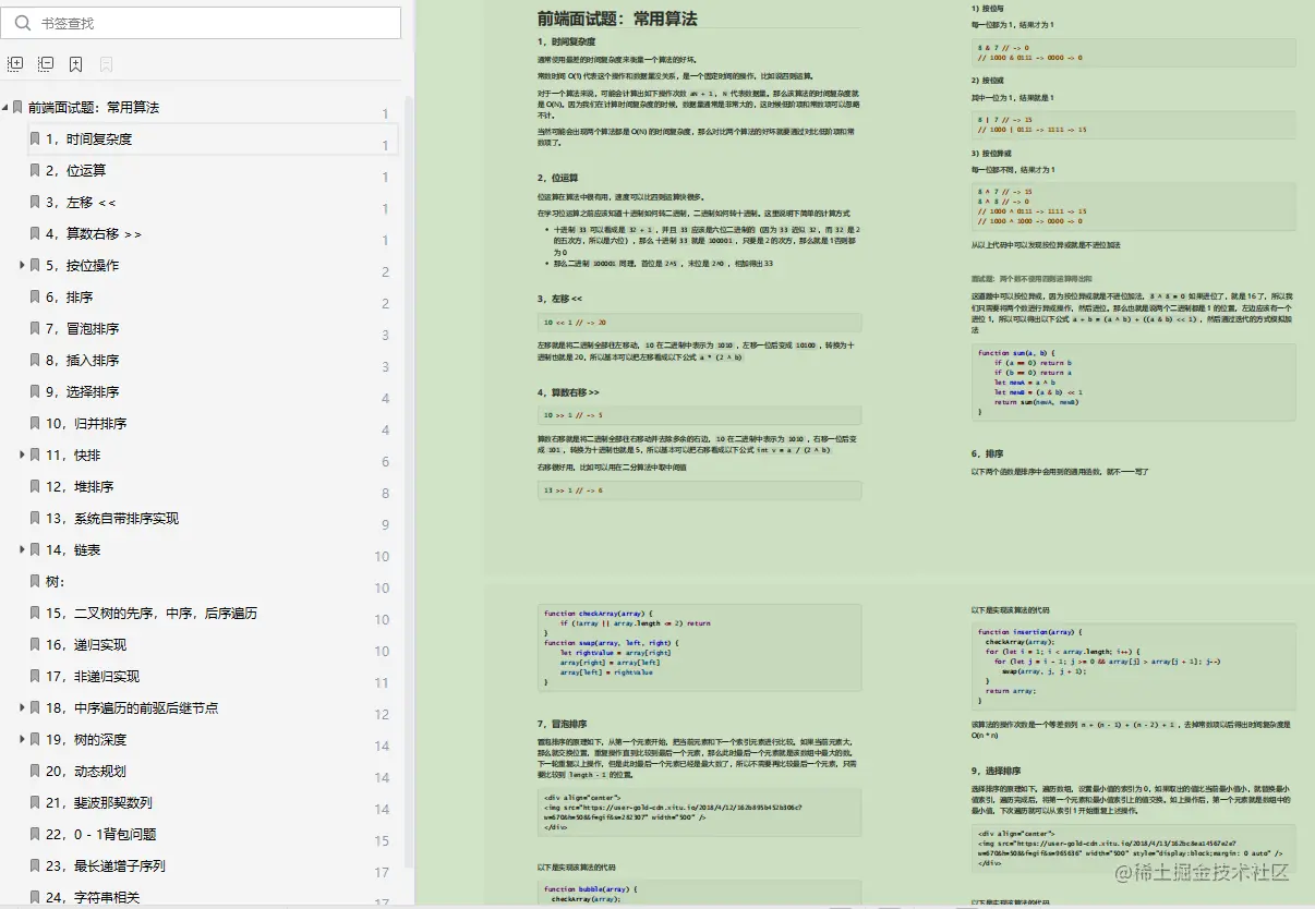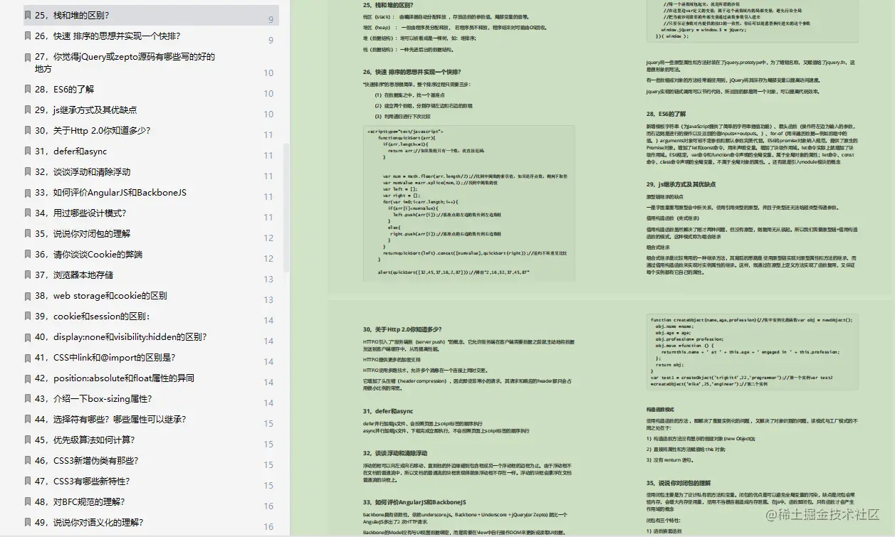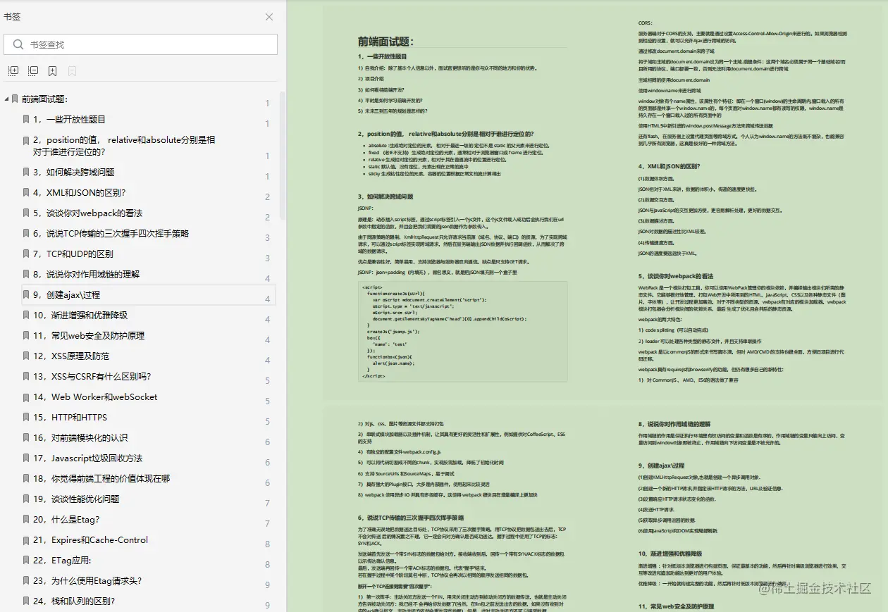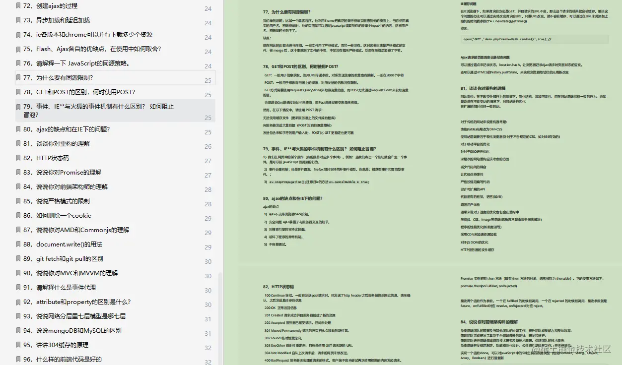 篇幅有限,这里只列出了面试题,和部分截图,不过面试题和详解都已经整理成PDF文档,可以点击这里免费领取!可免费领取资料还包括CSS面试题总结,JavaScript面试题总结,Vue面试题总结,React面试题总结,常用算法等等。
