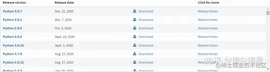 点击上图中的版本号或者“Download”按钮进入对应版本的下载页面,滚动到最后即可看到各个平台的 Python 安装包。