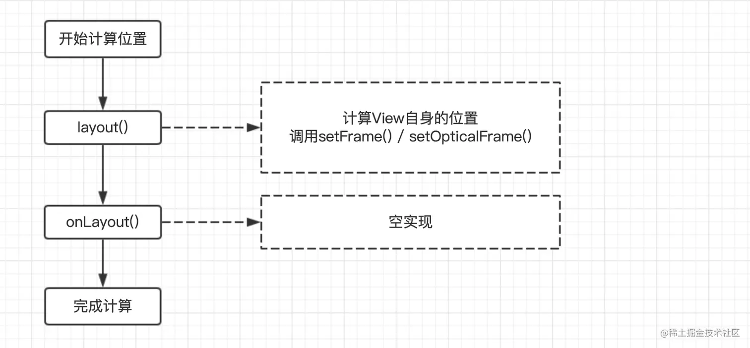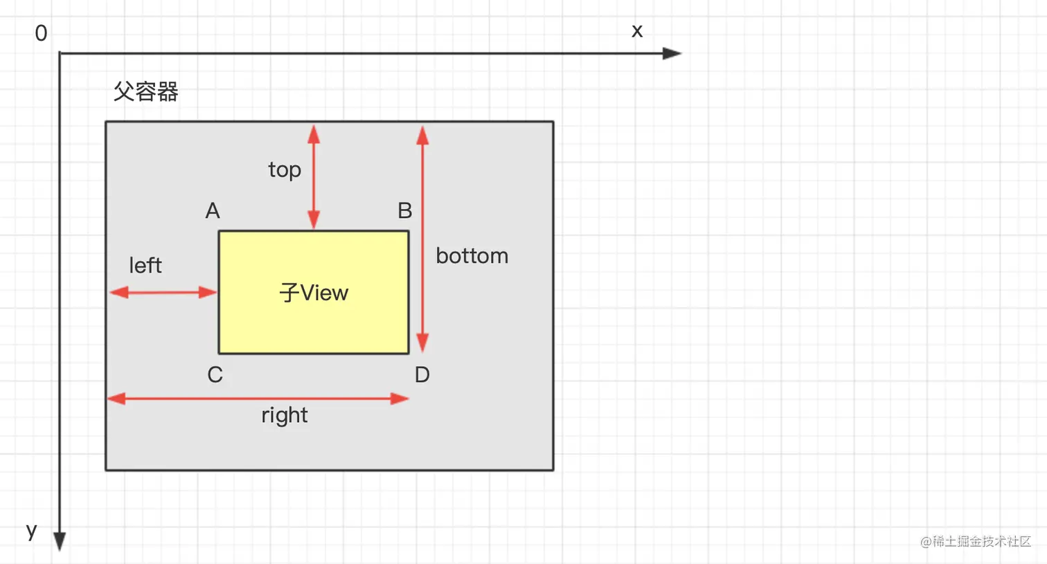 前面说了在自定义 View 的时候,我们需要测量出 View 的宽和高,在某些情况下,需要多次测量才能确定 View 最终的宽 / 高;该情况下,Measure 过程后得到的宽和高可能不准确,因此最好是在 Layout 过程中通过 onLayout() 方法去获取最终的宽和高。Layout 过程用于计算 View 的位置,即计算 View 的四个顶点位置:Left、Top、Right、Bottom,还记得 View 的位置定义吗?