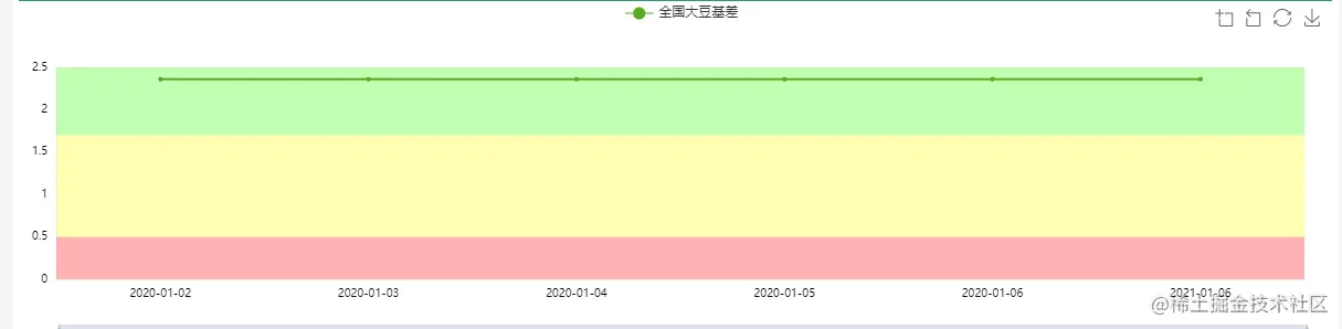 echarts 背景颜色分段显示 倔强的小马同学 2021-01-25 1,138 阅读1分钟 完成以下功能 百度了好多天,都没有找到解决办法,最后还是在echarts社区里面找到了例子。随手记录一下 散会~~