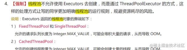 不要怀疑,上面这个截图就是阿里开发手册里面的,明确指出了上面几种方式的缺点,你看真的是阿里开发手册