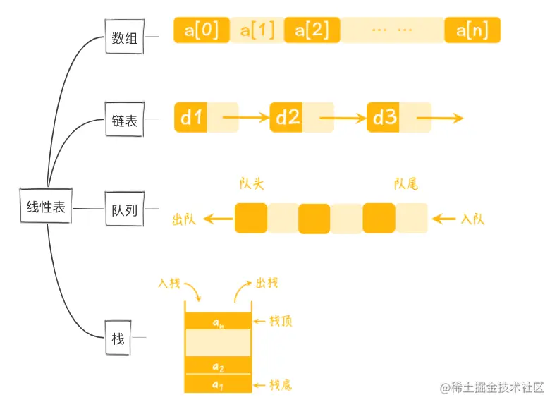 常见的线性表数据结构如下: