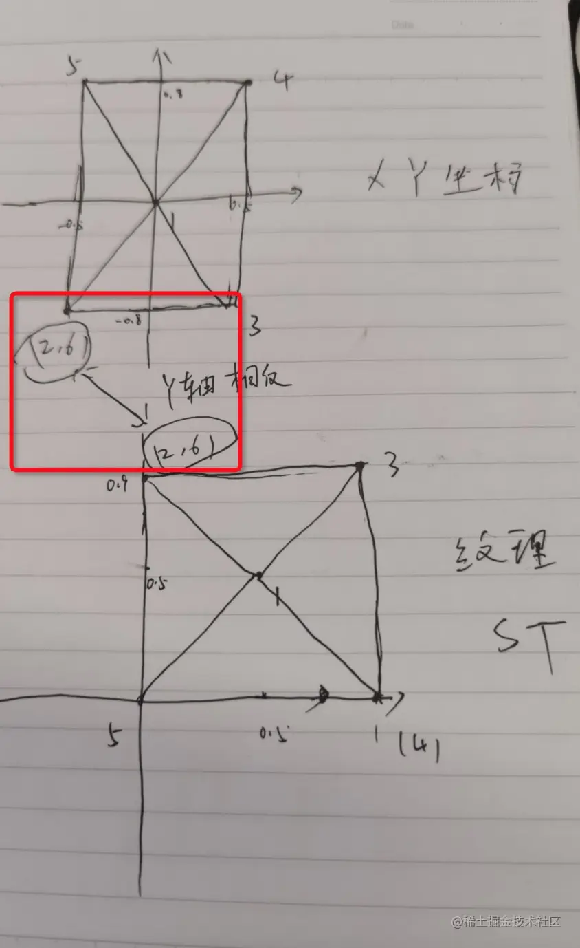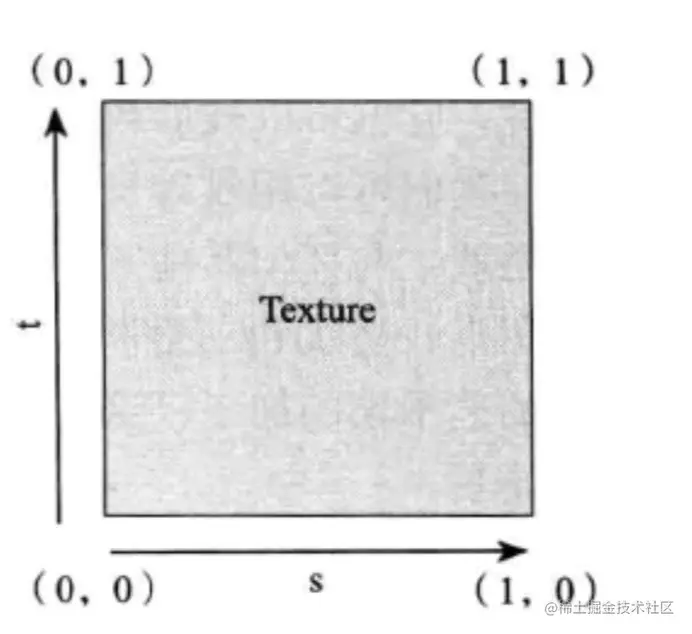 每一个二维纹理都有自己的坐标空间,其范围是从(0,0)到(1,1),按照惯例,一个维度叫做S,一个维度叫做T,当我们需要把纹理用于一个三角形或者一组三角形时,我们要为每一个顶点指定一组ST纹理坐标,以便让Opengl知道使用,纹理的那个部分绘制到三角形上,这些纹理坐标有时也被称为UV纹理坐标