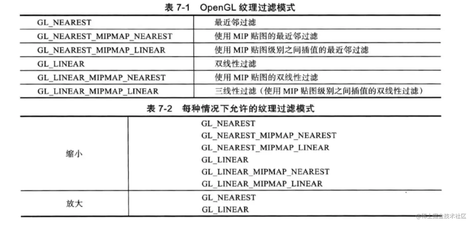 * GL_TEXTURE_MAG_FILTER:在放大的情况下用 GL_TEXTURE_MAG_FILTER:双线性过滤