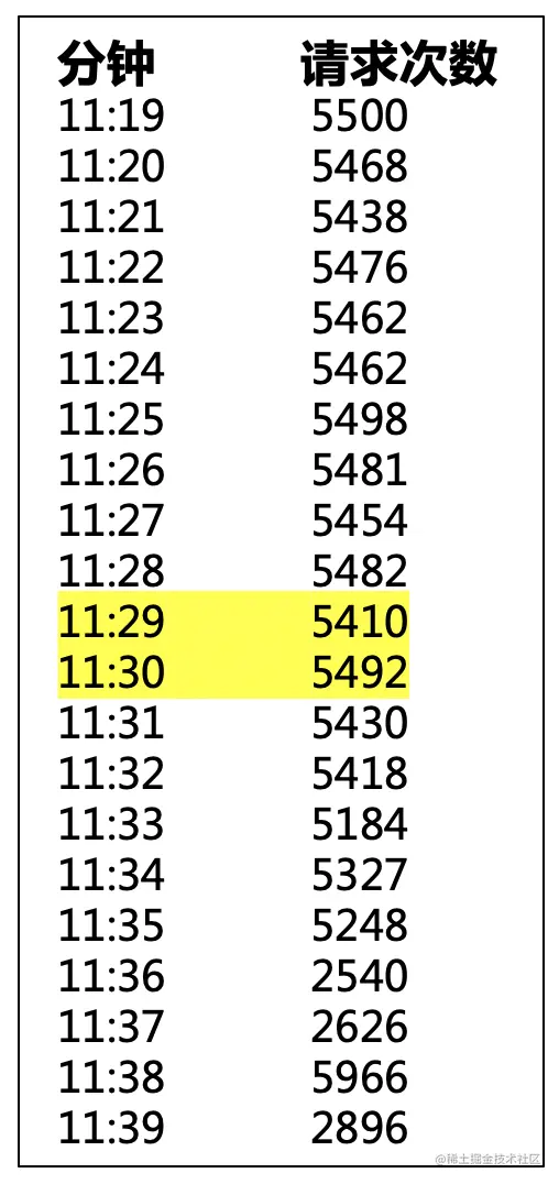 等待问题再次复现的过程中,我基于ES运行日志中统计了每一分钟的读写请求频次:
