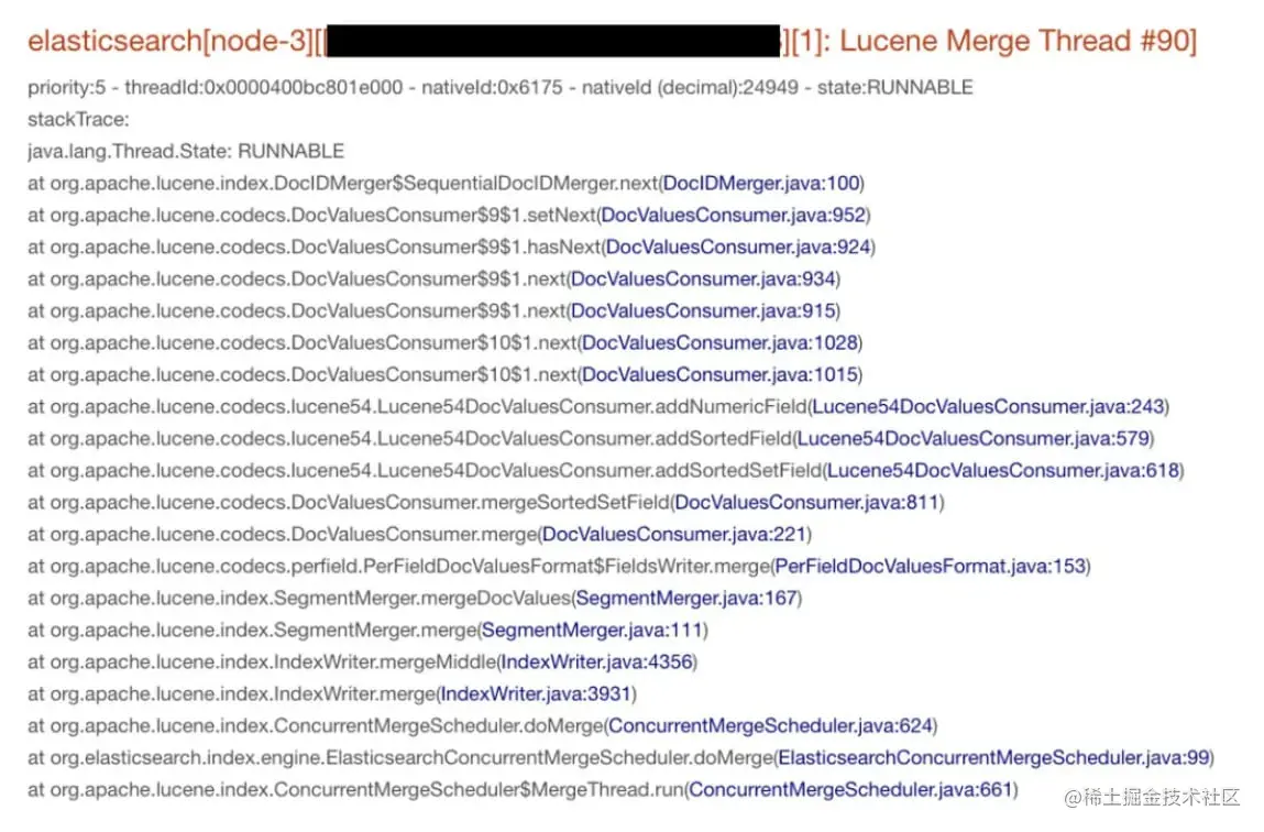 - Lucene Merge Thread达到77个,其中一个线程的调用栈如下所示: