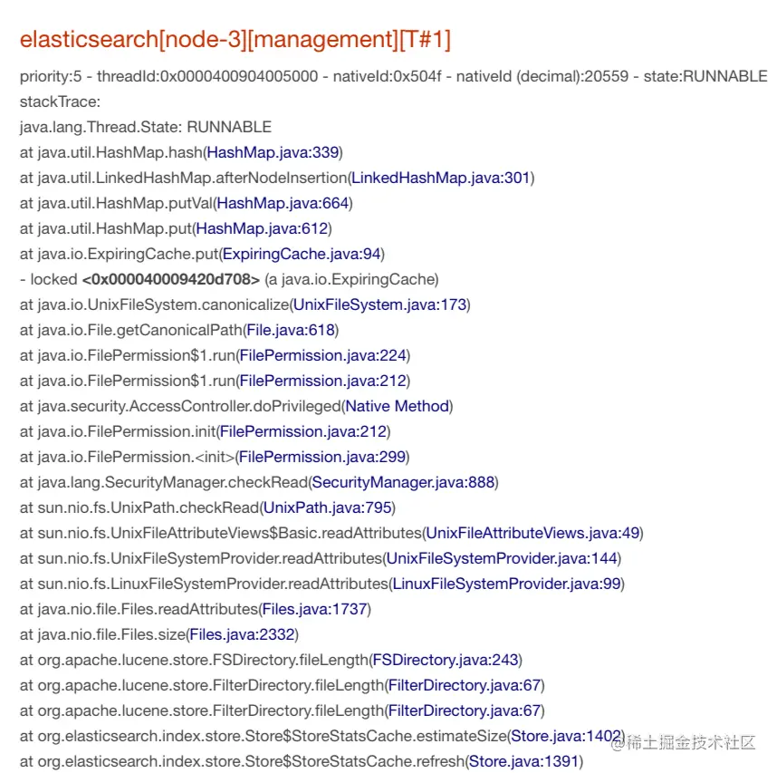 从文件的大小,可轻易看出39节点大概率是一个问题节点,它的Thread Dump日志明显大出许多:查询变慢或者卡死,通常表现为大量的Worker Thread忙碌,也就是说,活跃线程数量显著增多。而在ES(Elasticsearch,以下简称为ES)的默认查询行为下,只要有一个节点出现问题,就会让整个查询受牵累。