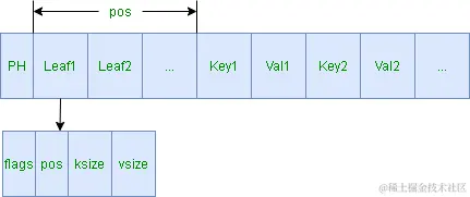 每个page.ptr指向的数据结构在落盘后其前面都会存page,我们称为PageHeader,下文用PH表示