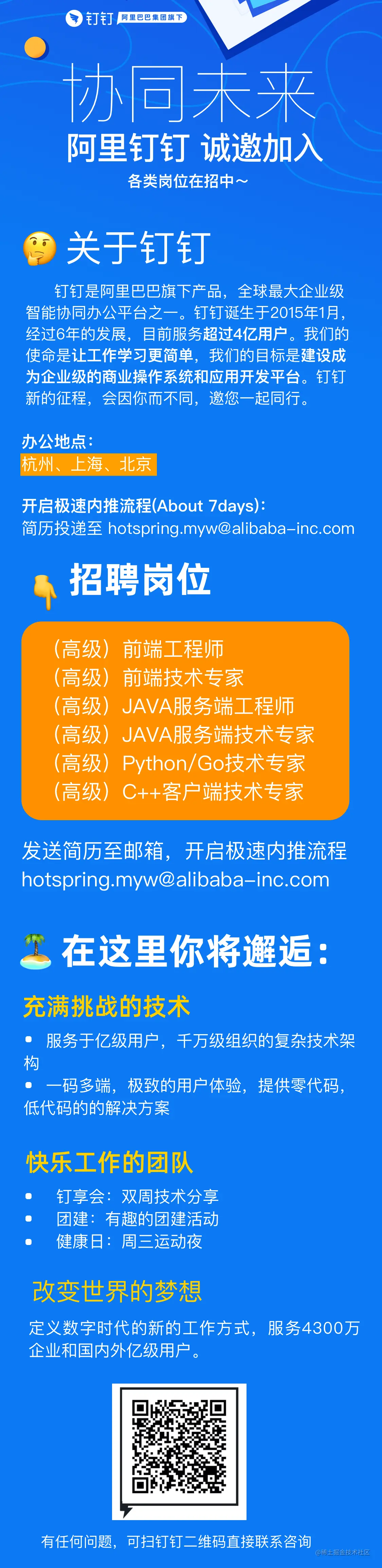 钉钉团队,现开放多层级职位,广纳贤才,特邀你与我们一起,共建全球最大的移动智能办公平台!