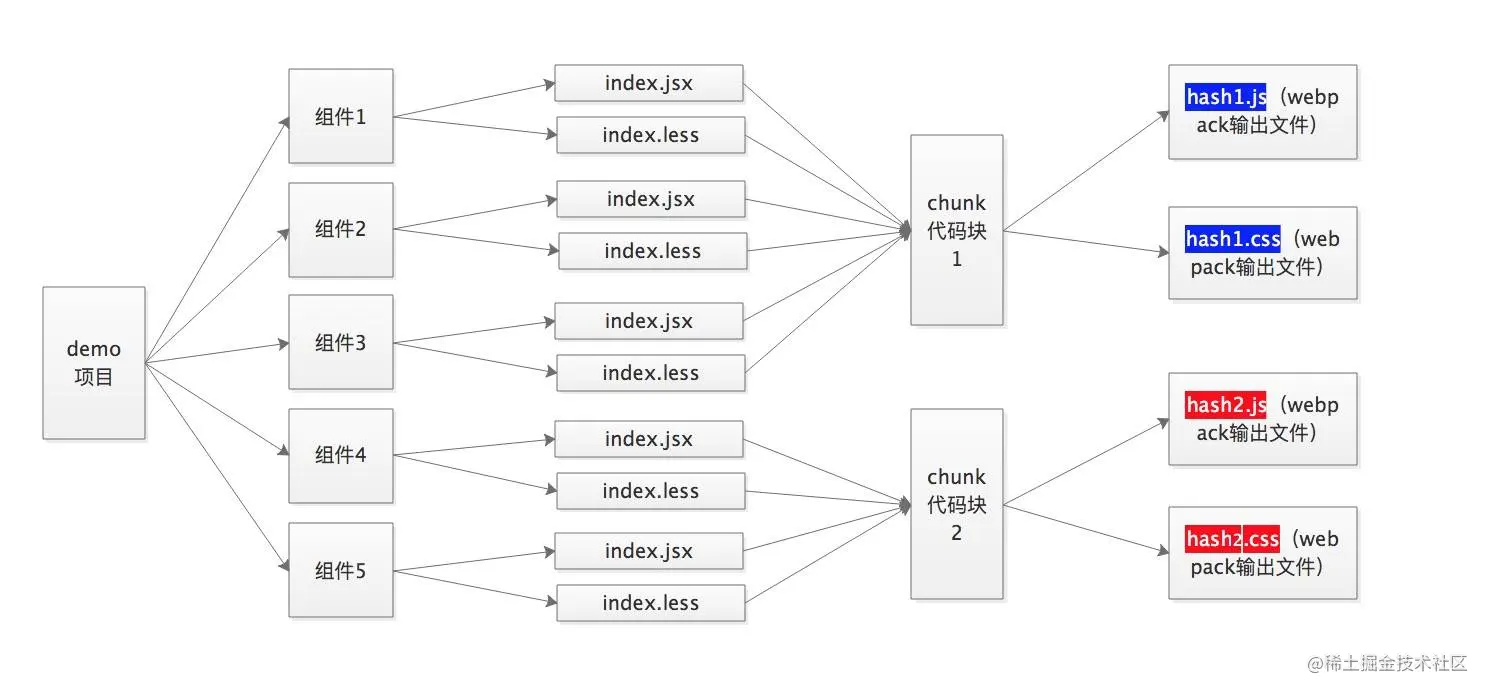 contenthash 生成与前两种hash生成方式不一样,它是通过mini-css-extract-plugin 和 JavascriptModulesPlugin 插件生成的hash;