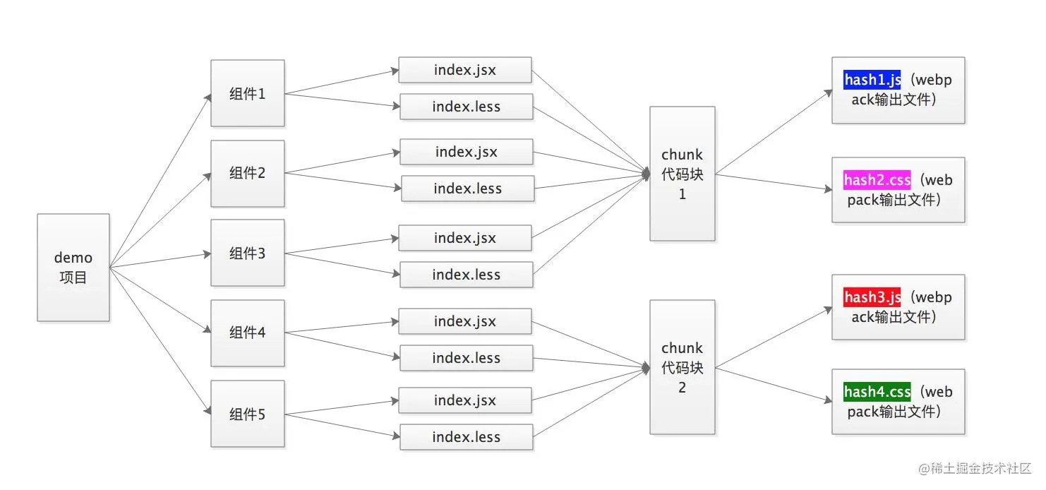 mini-css-extract-plugin是webpack打包构建时把css类型的module单独分类出来的插件,使用该插件时会为css类型的文件单独生成hash;它会把代码块(chunk)中所有类型为css/mini-extract的module的hash作为内容生成chunkhash。