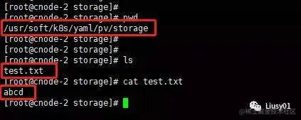 创建容器后,进入容器,在容器目录pvc添加文件,看对应的PersistemVolume中的路径是否有相应的文件。