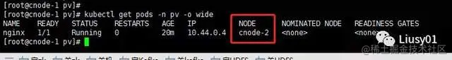 可以看到,相应的节点目录是存在容器中创建的文件的。同理,如果在节点目录添加文件,那么容器中的挂载目录也会有相应的文件。