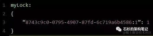 上述就代表“8743c9c0-0795-4907-87fd-6c719a6b4586:1”这个客户端对“myLock”这个锁key完成了加锁。