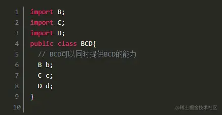 - 一种是外部import进来的类作为成员,这个叫 聚合****aggregation