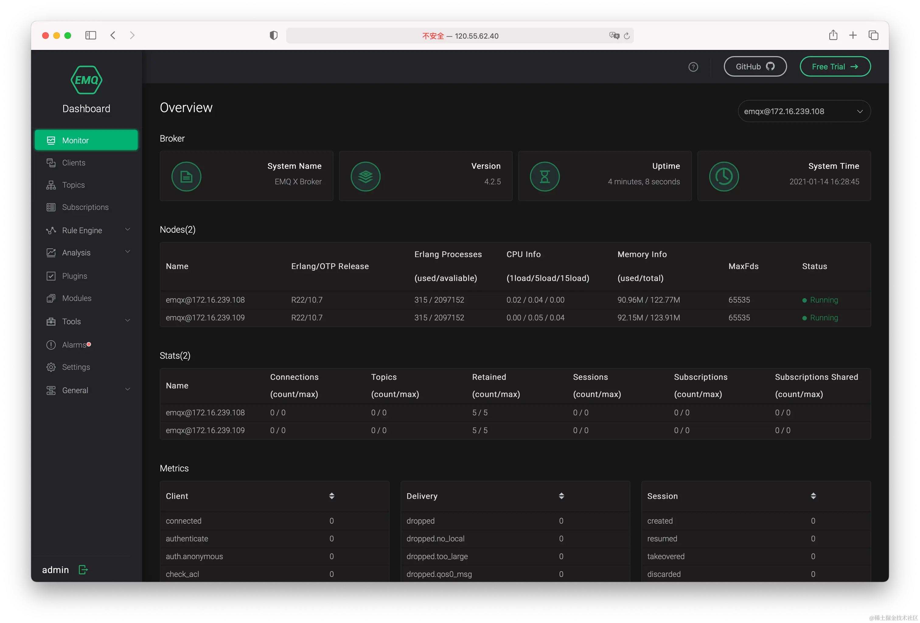 - 172.16.239.109:EMQ X 节点 2