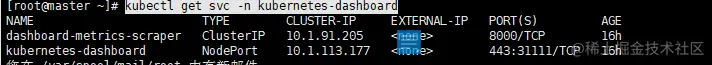 kubectl get svc -n kubernetes-dashboard