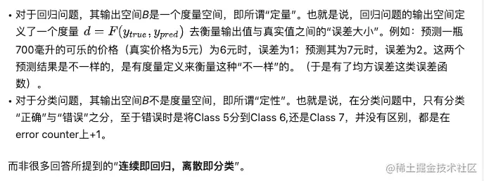 其实:回归与分类的根本区别在于输出空间是否为一个度量空间。