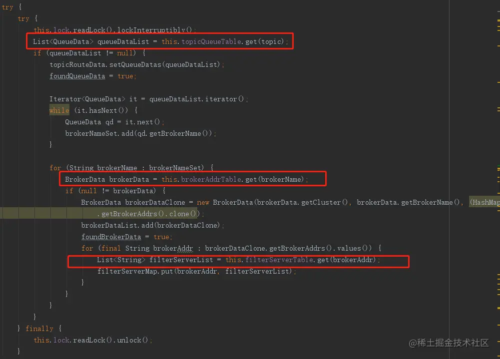 getRouteInfoByTopic方法会根据topic信息在容器内找到对应的路由信息。
