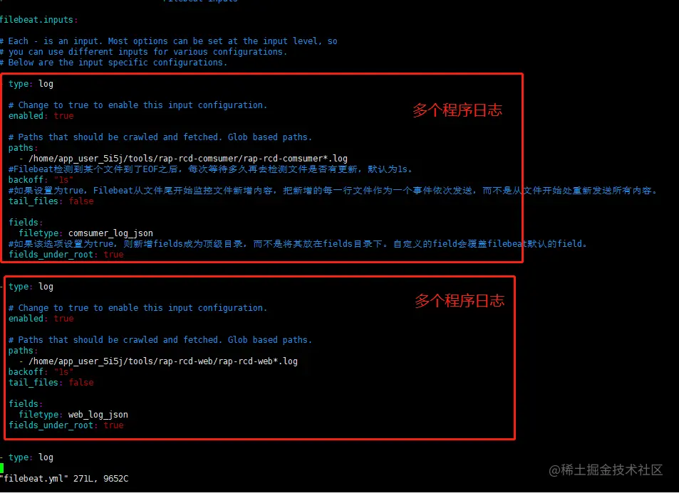 3.图中红色字段部分的是输入数据到 指定es的ip以及读取日志后输出的日志时间格式