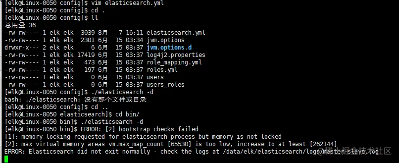 修改文件/etc/elasticsearch/elasticsearch.yml,上面那个报错就是开启后产生的,如果开启还要修改其它系统配置文件 bootstrap.memory_lock: true