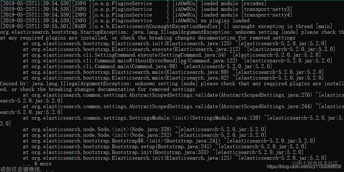 启动注意问题 : 1. 在 elasticsearch.yml 配置 node.name 的时候,启动报错,以下是配置和报错信息。