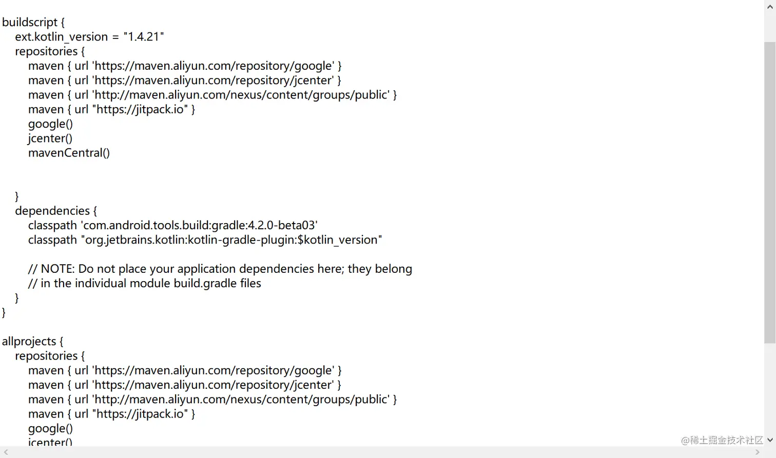 最后来点建议,Android Studio尽量不用内置的更新来更新,特别是版本跨度较大的,可以下载压缩包的形式来体验,这样一来想装几个版本就装几个版本,相互之间毫无影响,最后附上阿里云的仓库源地址