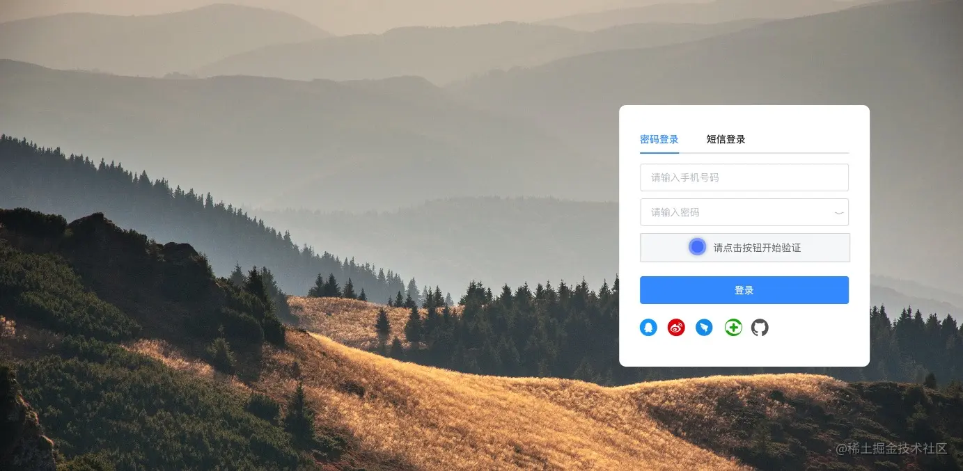本次规划的登录方式有三种,密码登录、手机验证码登录、第三方登录,接下来就一一来看一下。