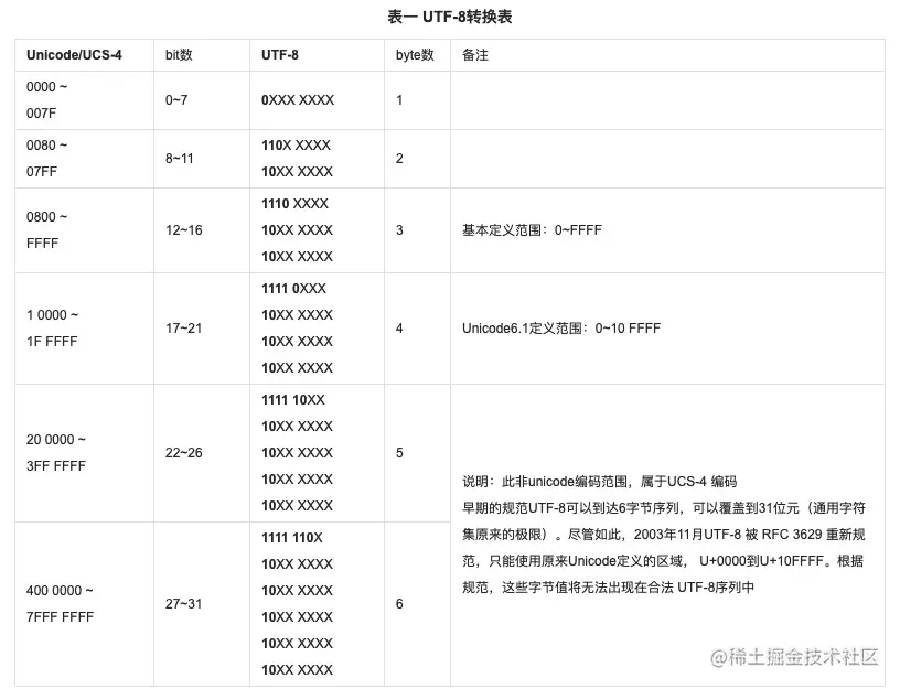 以上面百科上的utf8编码转换表来写一个简单的计算字符字节数的方法如下: