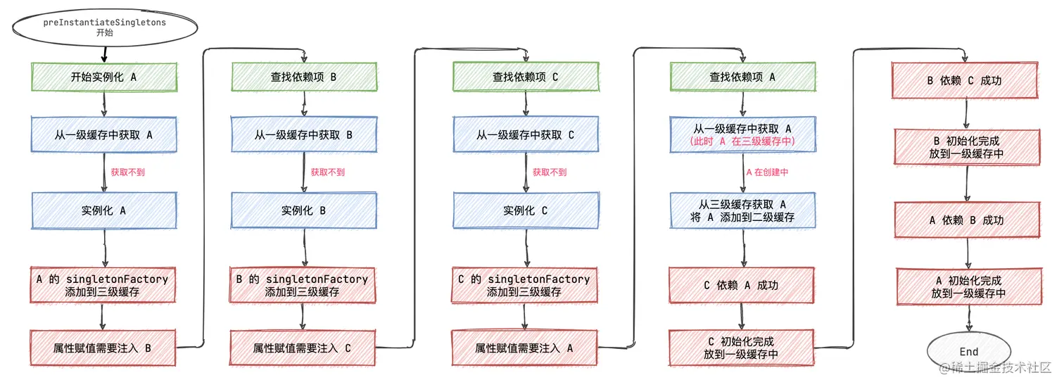 本文也通过 Debug 来验证了使用三级缓存解决依赖的过程。