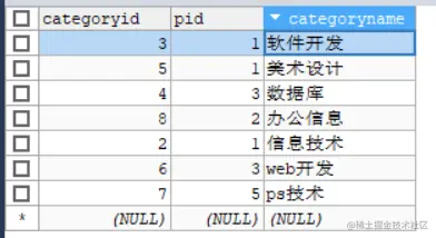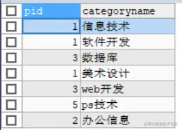 SQL自连接 KittyGuy 2021-01-26 160 阅读1分钟 要点 把一张表看成两张表 表的内容要有层次关系(从属关系) 也可以理解成把一张表拆成两张一样的表 样例 需要自连接的表 隐式看成两张表 然后连接 SELECT a.`categoryname` AS '父栏目',b.`categoryname` AS '子栏目' FROM `category` AS a,`category` AS b WHERE a.`categoryid`=b.`pid` 即《数据库》从属于《软件开发》,,,