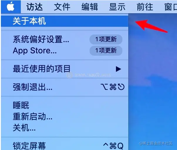 1.首先,单击左上角的Apple菜单,然后单击“关于本机”。