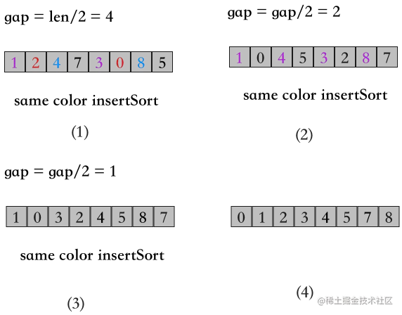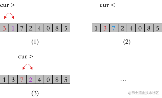 - 在下面的代码中,swap函数用于元素交换,实现为:
