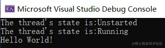 当一个 Thread 对象创建好之后,它的状态就是 Unstarted,然而当 Start 方法启动之后,线程的状态将会从 Unstarted 切换到 Running 状态,下面的代码展示了这种轮转。
