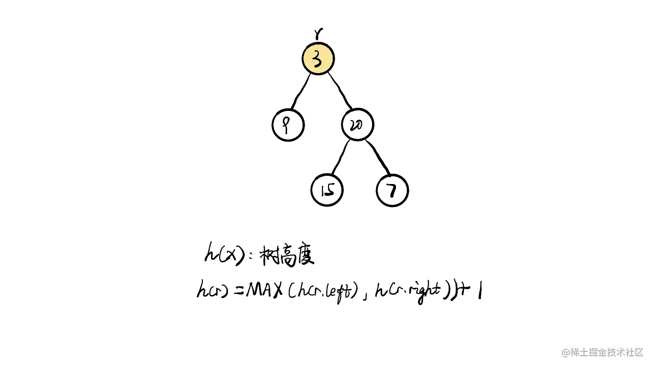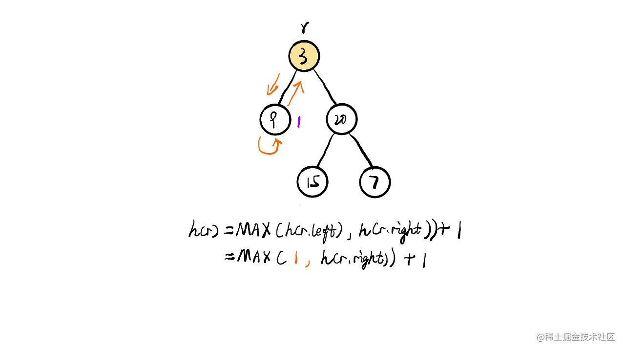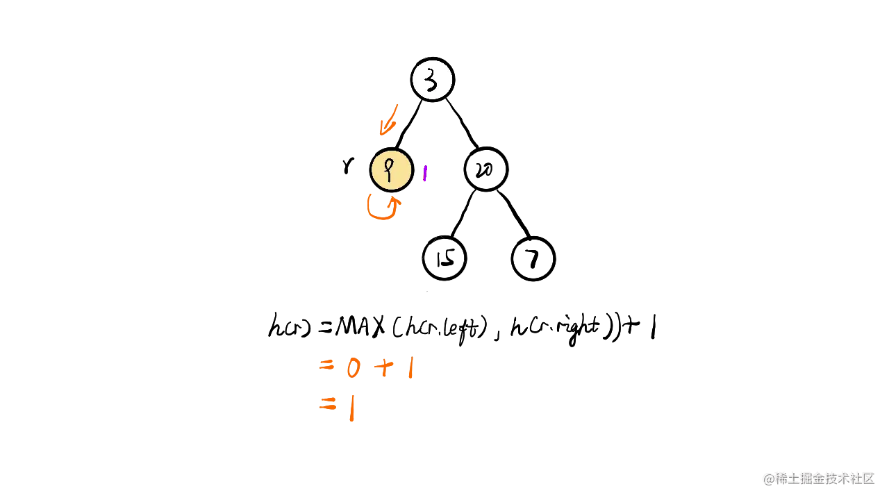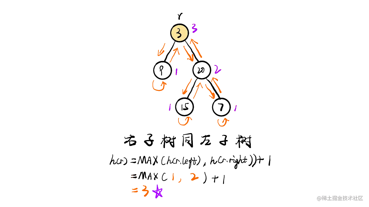 - 右子树深度 = max(右子树的左子树深度,右子树的右子树深度) + 当前节点所在的一层深度;