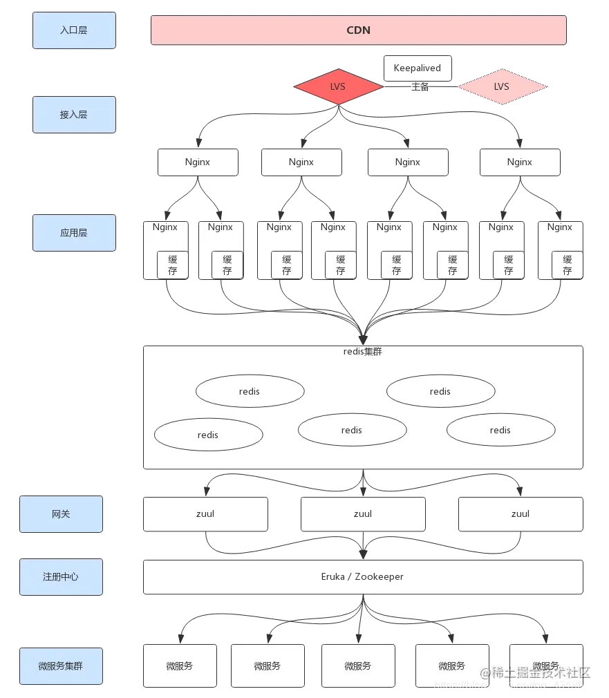 当并发量超过50000后,或者说在亿级流量下,一般采取如下架构