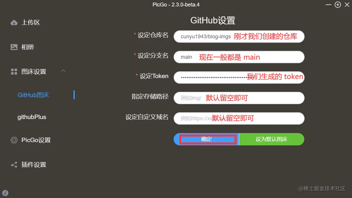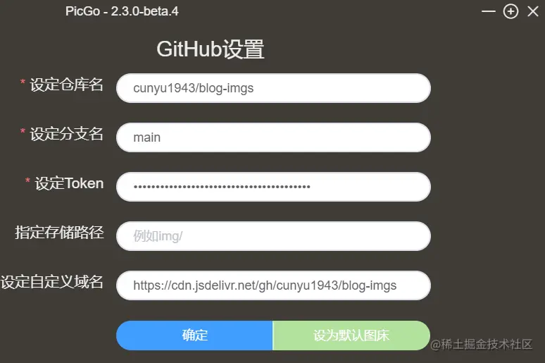 确定即可,要将其作为默认图床的话,点击设为默认图床;