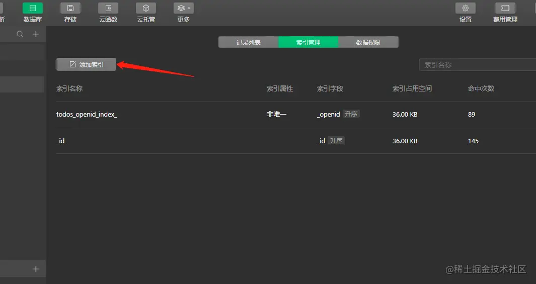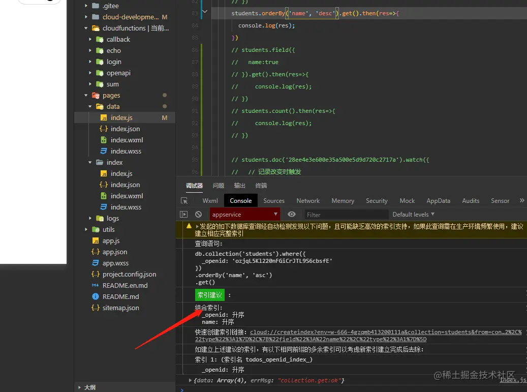 - 在做数据库操作的时候,控制台会提示 索引建议。这个在云控制台中配置。添加上索引管理他就不会提示了