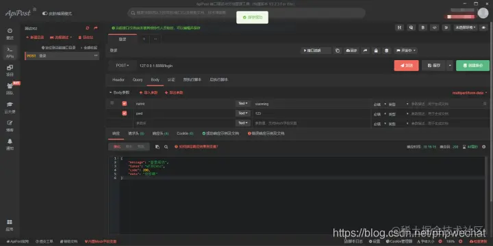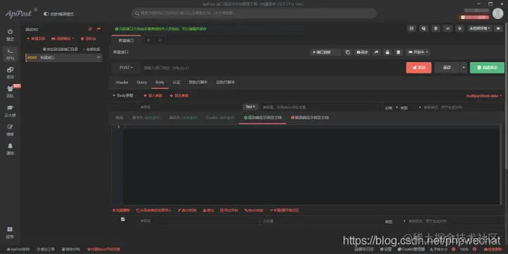 针对http接口进行测试,使用国产工具apipost实现。 apipost工具设计之初是用于做接口测试,接口联调和接口文档生成的工具。它在实现对各种接口的调用方面已经做的比较成熟。因此,本次直接使用apipost来完成对Http接口的测试。