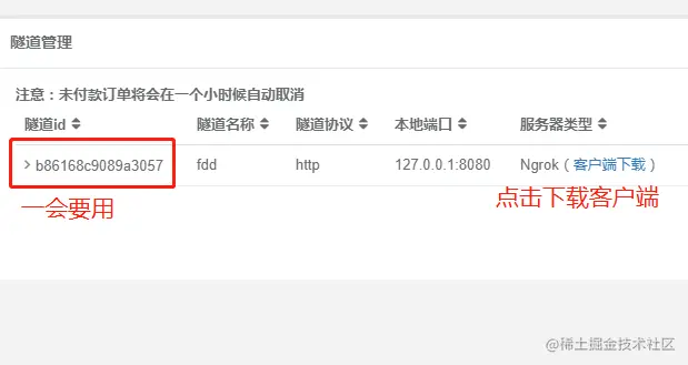 第四步:下载客户端,之后输入你的隧道ID,隧道ID在你的隧道管理页面