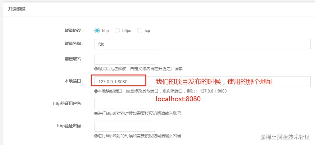 第三步:配置隧道,注意端口号是你的web项目发布的端口。