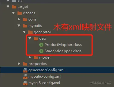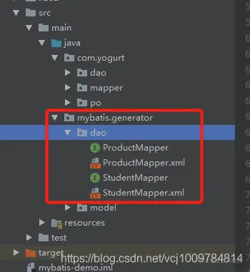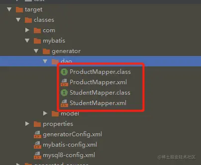 能看到mybatis-generator除了给我们生成了基本的PO类(上图的Student和Product),还额外生成了Example类。Example类是为了方便执行SQL时传递查询条件的。使用的示例如下