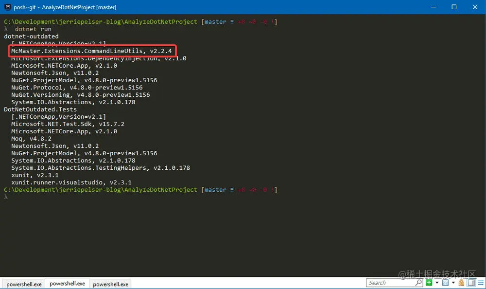 好吧,我们再以dotnet-outdated的源代码为例。从上一篇博文中的示例应用程序中我们可以看到,我在该项目中引用的一个包是McMaster.Extensions.CommandLineUtils包。