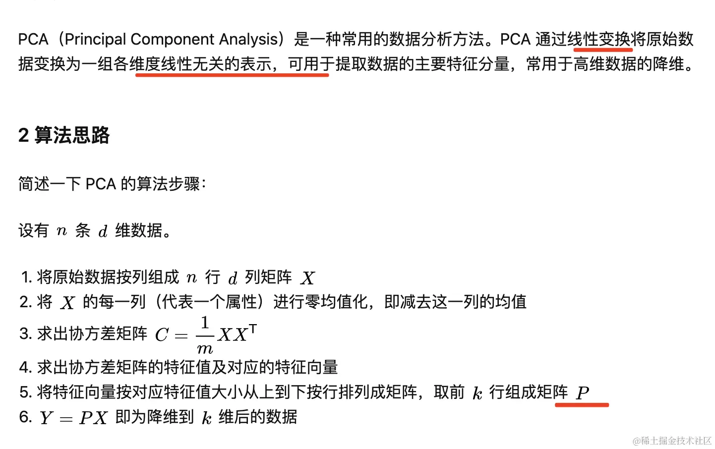 - 何为充分:使其原向量在新的基上的投影值方差最大。多维向量即用协方差。