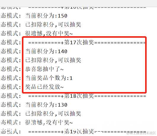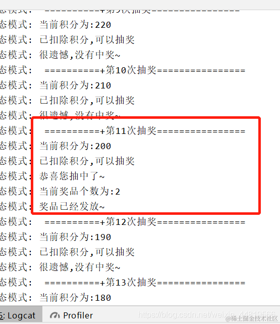 Log.i("状态模式"," ==========+第"+(i+1)+"次抽奖================");
