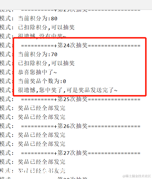 - 中奖,但是奖品已经全部发完,结束程序